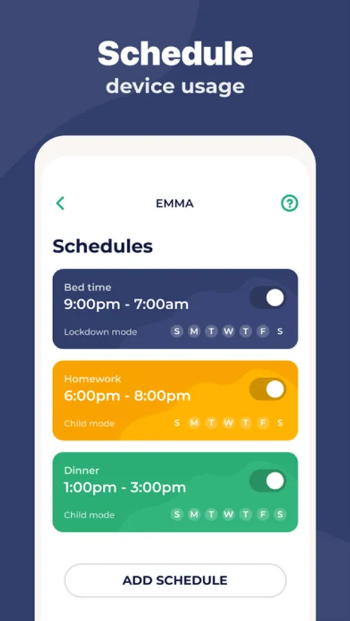 • Use Schedules for device free homework time, dinnertime, bedtime and family time