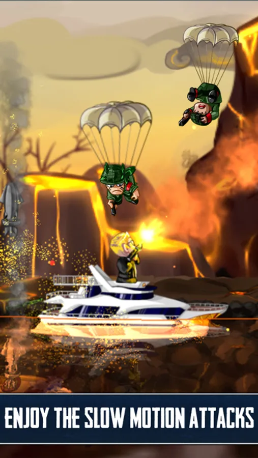 Download this army game, a classic run and gun. Feel the adrenaline in this endless game. Jump and shoot everywhere and at any time thanks to its offline game mode, escape the jungle in an awesome boat.