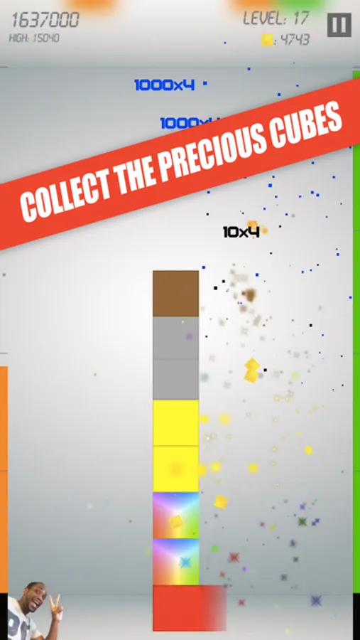 Collect the coloured squares that will not serve you and stack the squares of same colors to generate bonus and improve your score while taking care to avoid the penalty. But watch the clock is ticking and recover some colored squares you will not favorable.