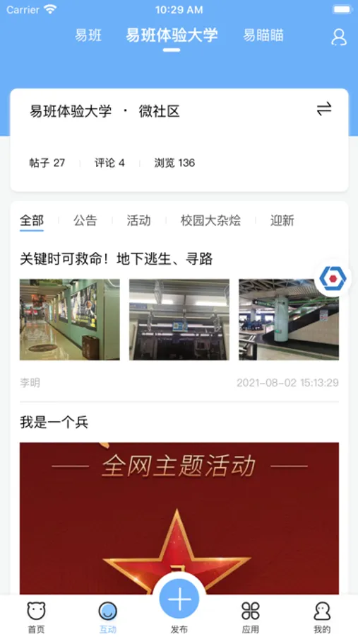 2. 互动:新的互动内容,融合易瞄瞄和校园微社区,采用多种互动模式结合成长体系提供优质的内容发布和传播通道。