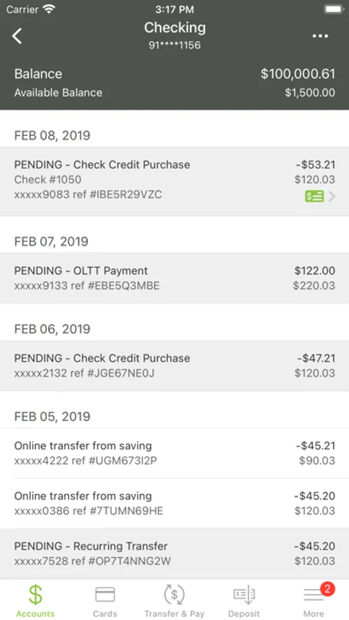 Search account history, as well as sort and search based on recent activity, dates, transaction description, check number and amount