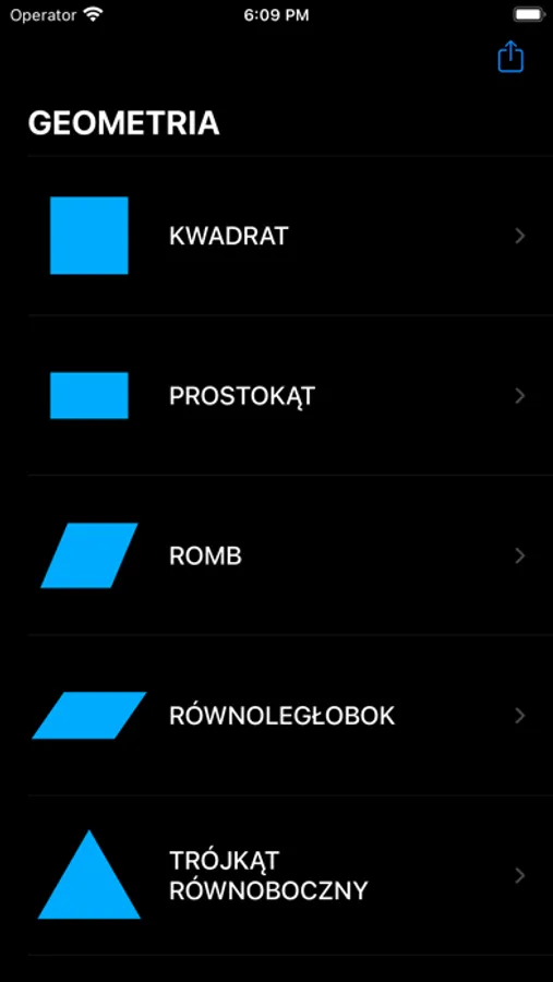Aplikacja zawiera podstawowe wzory matematyczne zobrazowane rysunkami. Zawarto moduły do obliczania pola, obwodu, objętości, sumy krawędzi.