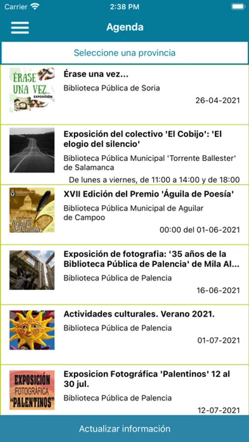 Nuestra agenda ofrece información al día, principalmente sobre todas las actividades de las bibliotecas provinciales: animación a la lectura, talleres, etc., entre las que destacan los clubes de lectura. Un enlace permite conocer además todas las actividades de la Agenda Cultural de Castilla y León.