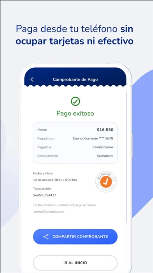 Mi Pago es una app que transforma tu celular en tu billetera digital permitiendo pagar a otras personas o comercios, de forma rápida y segura.