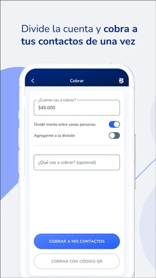 Divide y cobra la cuenta del almuerzo entre varios amigos al mismo tiempo o paga en comercios asociados, en sencillos pasos con tu teléfono celular.