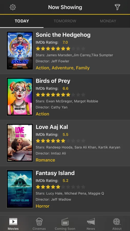 - Find your nearest cinemas easily by selecting "Cinemas Near Me" options.