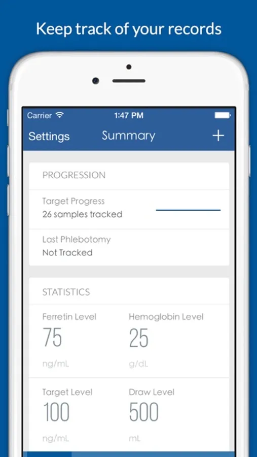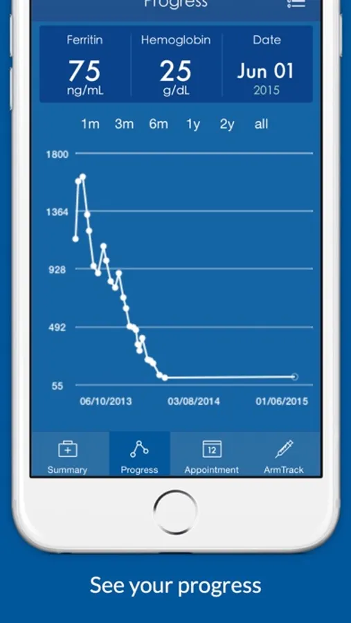 The Iron Tracker App gives patients a single place where treatment and life-long progress can be tracked, combining appointment management with tracking and visualization of bodily hemoglobin and ferritin values, providing a clear visualization of this data to better understand and share progress with friends, family and physicians. The app also tracks phlebotomy appointments and details, helping patients manage their lifestyle and wellness.