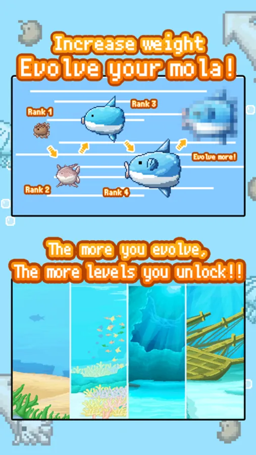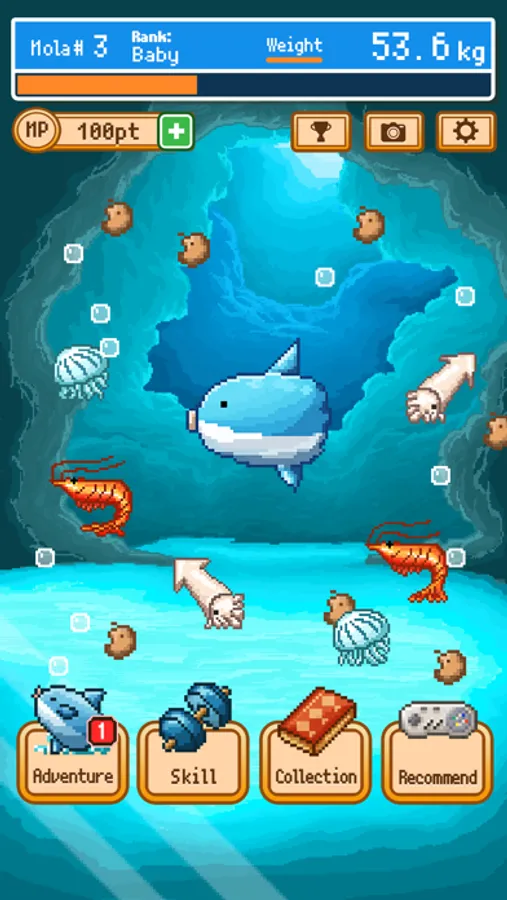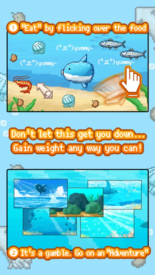 Jellyfish, squid, shrimp. Flick over underwater creatures and eat them up.