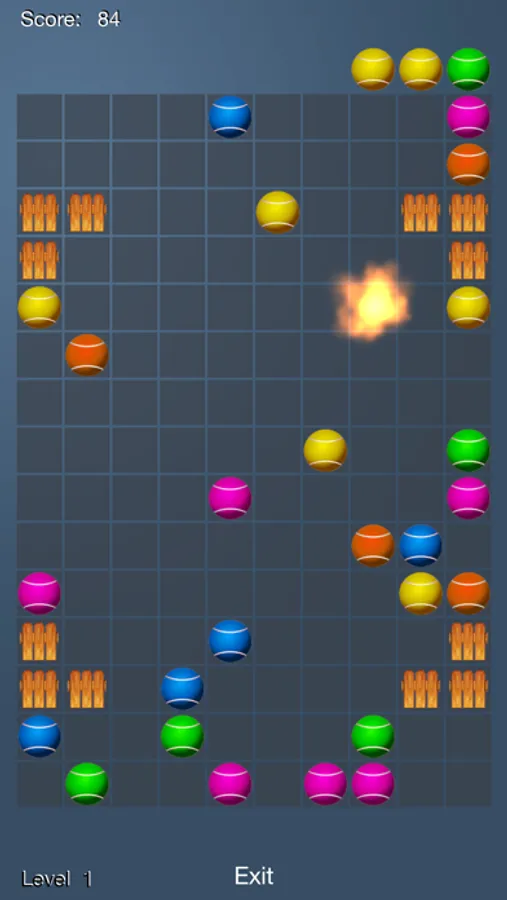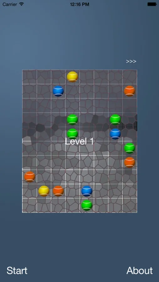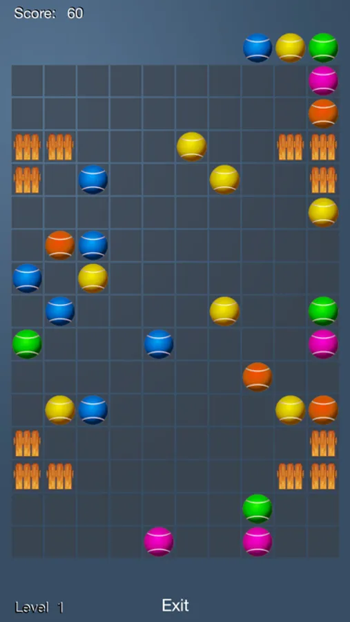 Connecticus is a connection game. The player can move one ball per turn, and the player may only move a ball to a particular place if there is a path between the current position and the desired cell. The goal is to remove balls by forming horizontal or vertical lines. The number of balls depends on the level. Each level has its own goal.