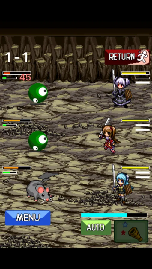 3人のキャラクターを強化してダンジョンの攻略を目指すゲームです。