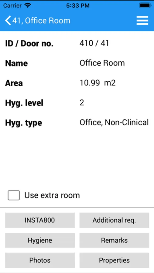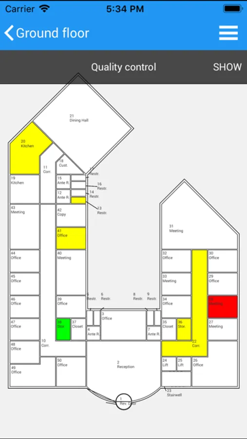 From The Cleaning System's Quality Control Module (possibly extended with Hygiene- / Infection Control Module for healthcare) spaces/rooms are extracted for quality control.