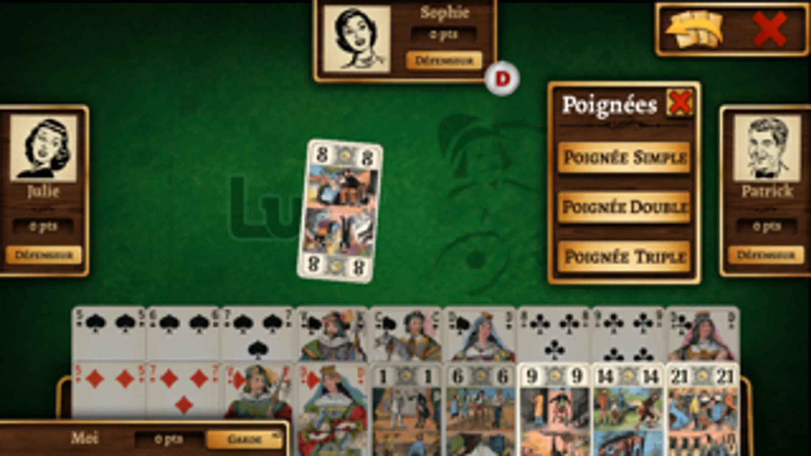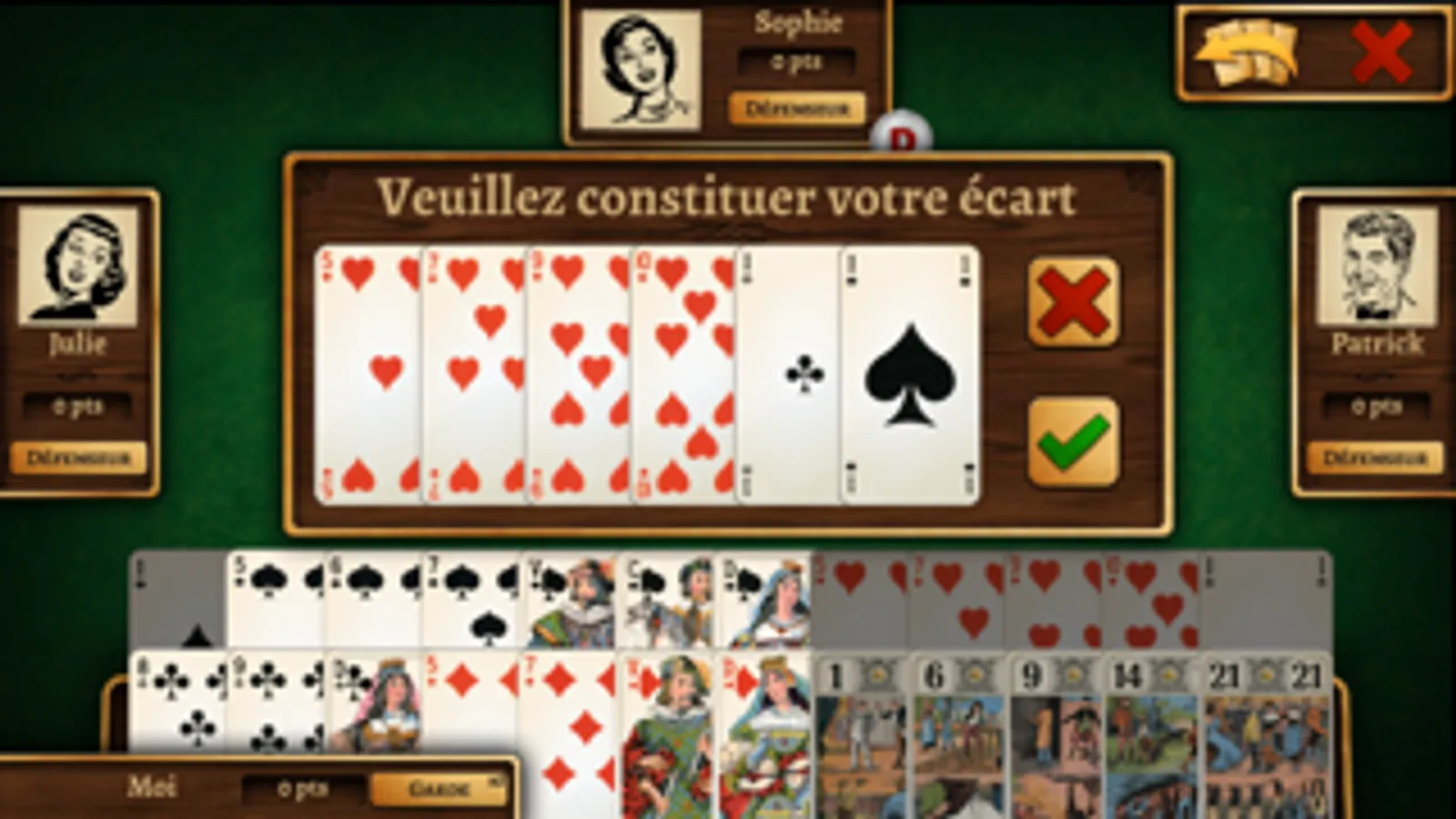 L’application Tarot Officiel F.F.T a été réalisée en partenariat avec la Fédération Française de Tarot. Affrontez Julie, Patrick et Sophie, nos joueurs dotés d’une intelligence artificielle qui vous permettront de jouer au Tarot n’importe où, n’importe quand.