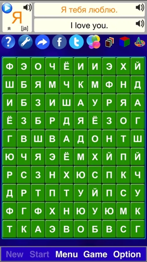 Learn all 33 Russian alphabets during playing the game. Turn on sound option to listen to pronunciation of 33 alphabets and basic greeting sentences. It's full of fun and education.