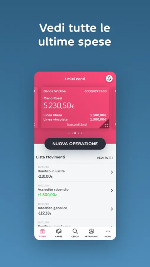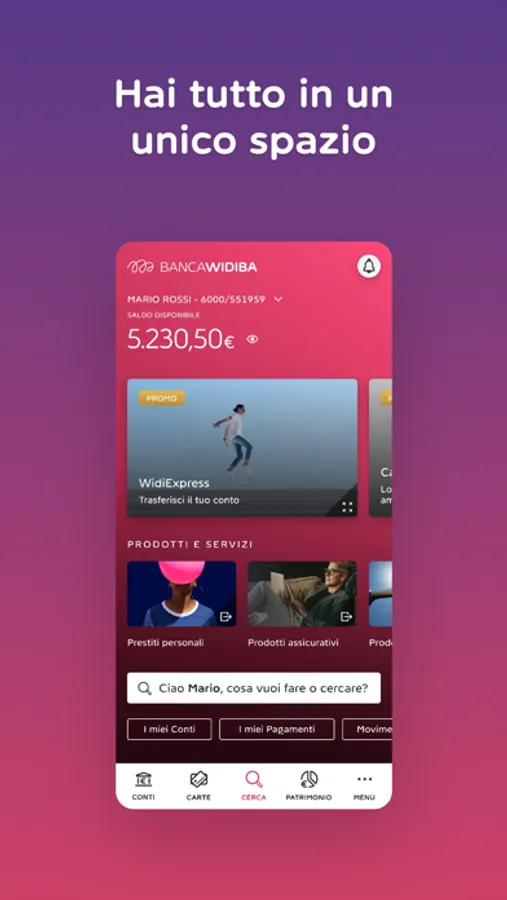 A custom experience, a simple communication with your every day language, a tool useful and always available. A new app easy and customizable. Install the new Widiba app now, it's free.