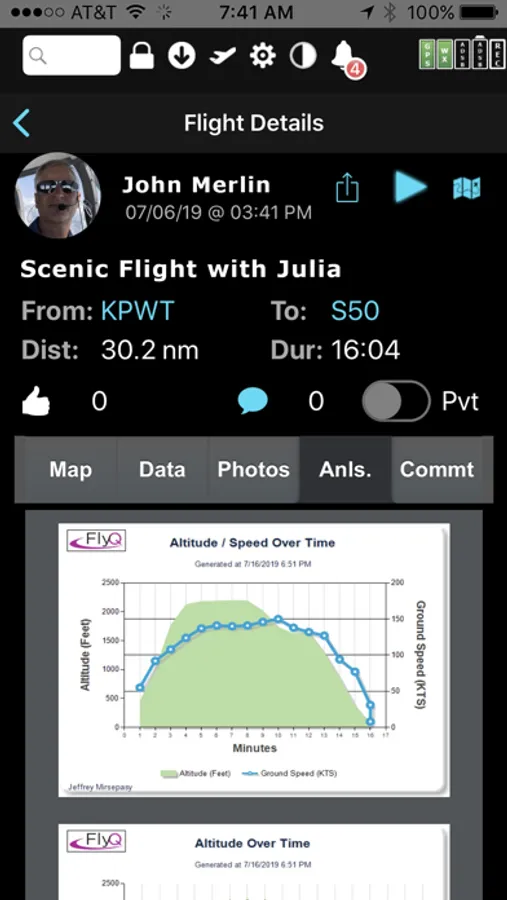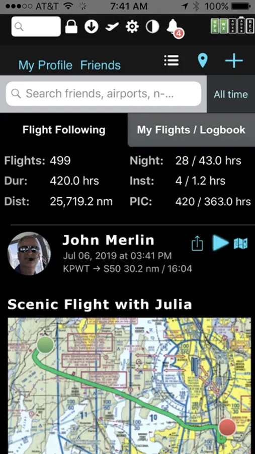 The Visual Logbook and Post Flight Playback / Analysis Graphs add a whole new dimension to your flying. Optionally connect with your friends to "see" and even replay their flights. CFI's can track student progress and remotely send endorsements.