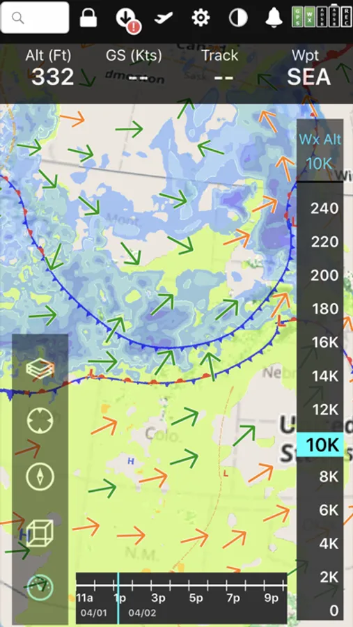 Amazing "4D Predictive Weather" uses a Timeline and Altitude slider to make detailed pre-flight and in-flight analysis easy. The Graphical Wind Optimizer uses red and green bars to show the headwind or tailwind at different altitudes. Also includes an extensive gallery of weather images.