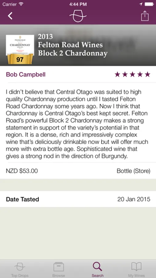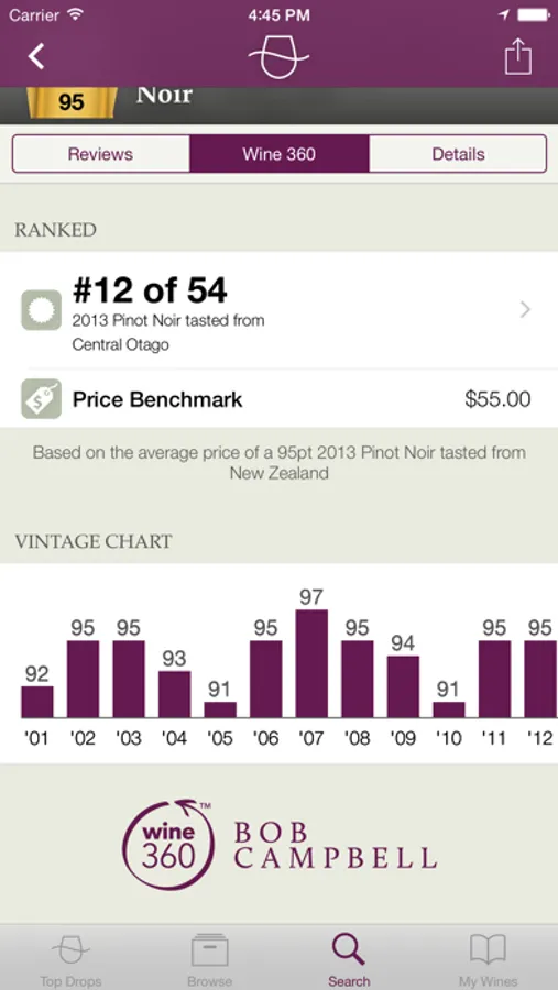 With a BobCampbell.nz subscription, the entire world of wine is at your fingertips. Along with ratings, vintage charts and comprehensive tasting notes for each wine, there is also a "Wine 360" view that shows how each wine compares with those of the same price and style in its category. You can record your own notes and preferences on the app too.