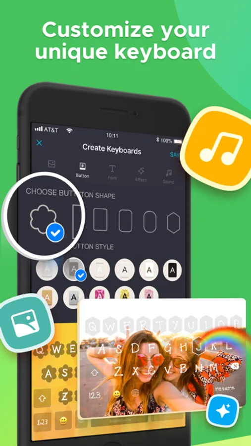 Customize your own keyboard with your favorite pictures! With RainbowKey integrated, you can create your keyboard with cool fonts, colorful pictures and cute emoji!