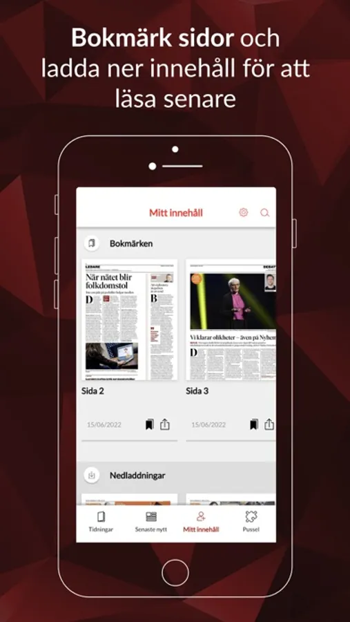 I eDagen kan du dela artiklar med vänner, söka i arkiv och spara ner tidningen om du vill läsa senare eller när du inte är uppkopplad. Du kan få pushnotiser så du blir påmind om när en ny tidning finns att läsa.