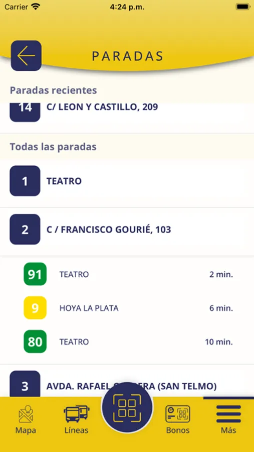 Mapa actualizado de la totalidad de la red de líneas de Guaguas Municipales, que incluye el servicio de Sítycleta y aparcamiento público. Nos geolocaliza y nos proporciona información sobre el servicio más próximo a nuestra ubicación.