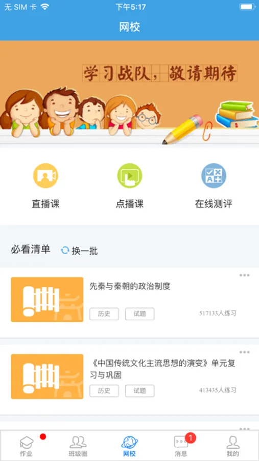 【在线学】学生可以做作业、查看作业批改结果;还有免费的点播课、直播课等栏目,让学习更丰富