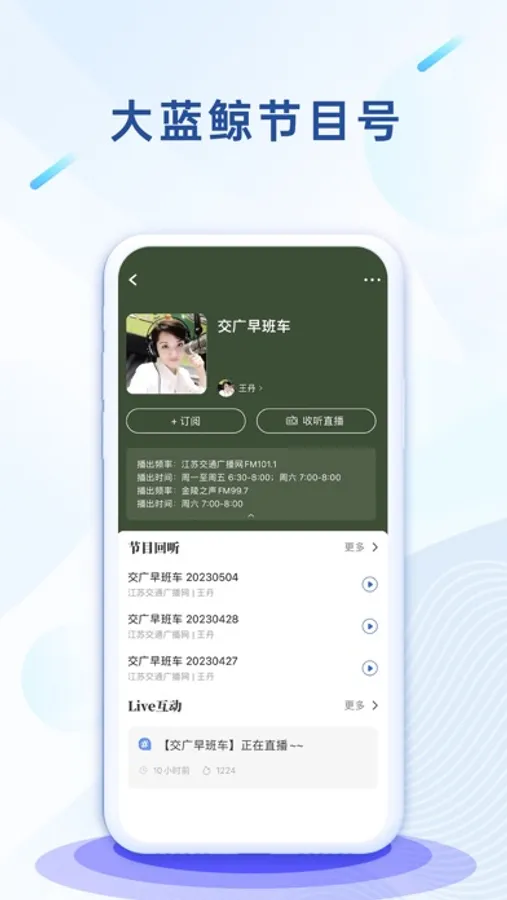 ● 通过大蓝鲸live边听节目边和主持人互动,让广播成为你的舞台;