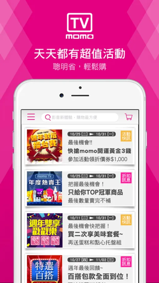 momo首創全台第一個影音直播購物台,貼心功能讓你輕鬆逛,超殺優惠熱烈加碼中,血拼也能省荷包!