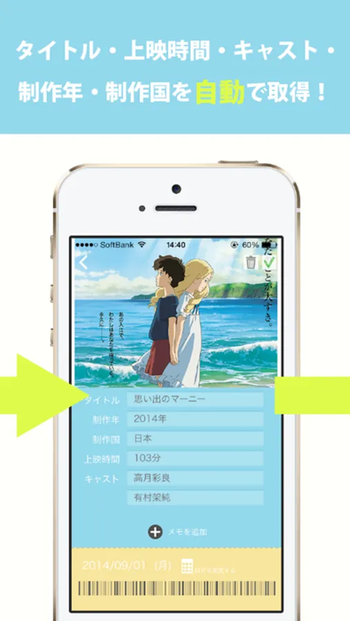 ータイトル・上映時間・キャスト・制作年・制作国の情報を自動で取得するので、鑑賞した映画を非常に簡単に記録することが可能です。