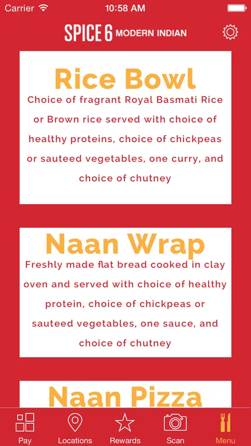 Welcome to the Spice-6 Modern Indian App!! This app features a fast and easy way to pay with your phone and earn rewards with every visit. Simply download the app and link your credit/debit card to get started.