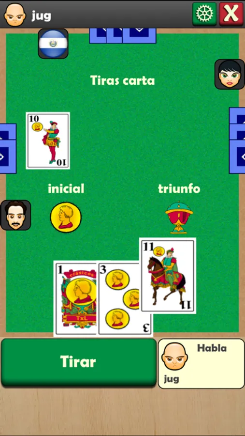 Se empieza repartiendo 3 cartas a cada jugador, se decide un palo de triunfo y comienza la partida. El juego consiste en hacer bazas, eligiendo una carta de tu mano del mismo palo y de valor superior a la que tire el primer jugador (palo inicial) o del palo de triunfo y de mayor valor (palo de triunfo supera al palo inicial) para ganar la baza, en el caso contrario ganará el jugador que lance la carta de mayor valor sobre la mesa.