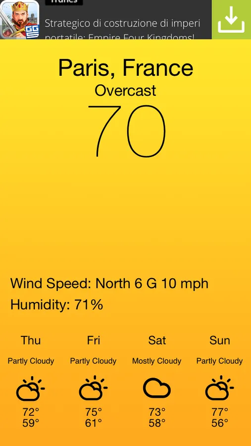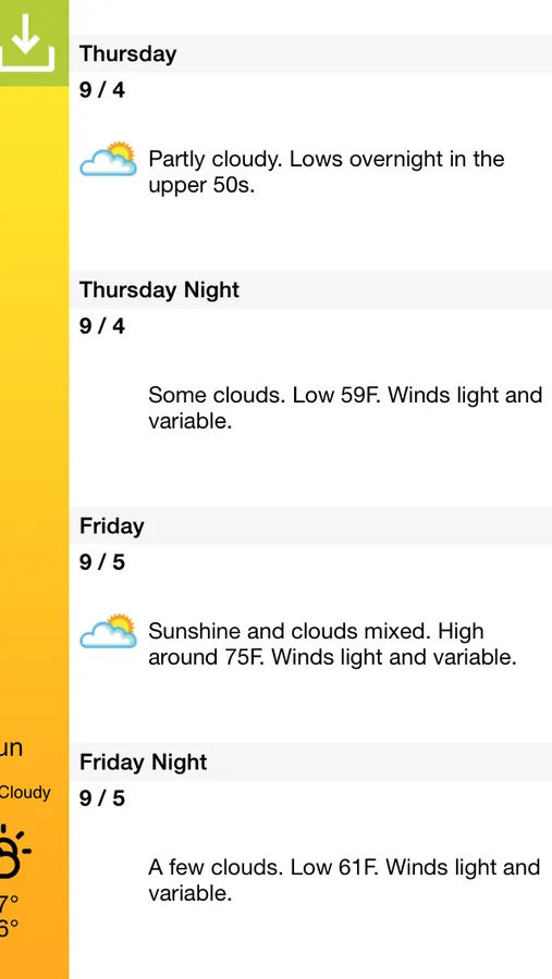 * تقديم تقرير مفصل الطقس لمدة أربعة أيام.