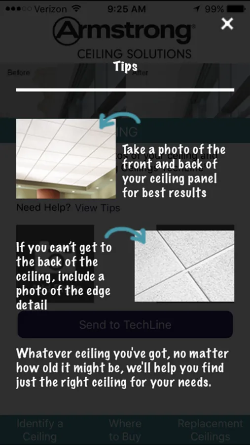 Now replacing your ceiling is easier than ever! Simply take photos of your facility’s existing ceiling (for optimum results include front and back or edge) and an email will go directly to our team of U.S. based technical experts. They’ll help identify your ceiling (no matter who manufactured it) and find the best match for your needs.