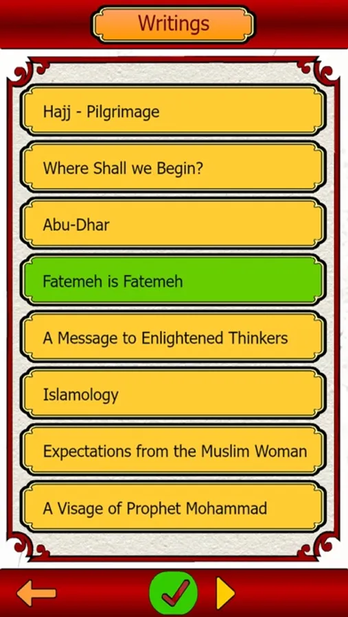 And the last selection is Speeches: This consist of his most popular speeches made in Hosseinieh Ershad Institute in Tehran from 1969 through 1974.