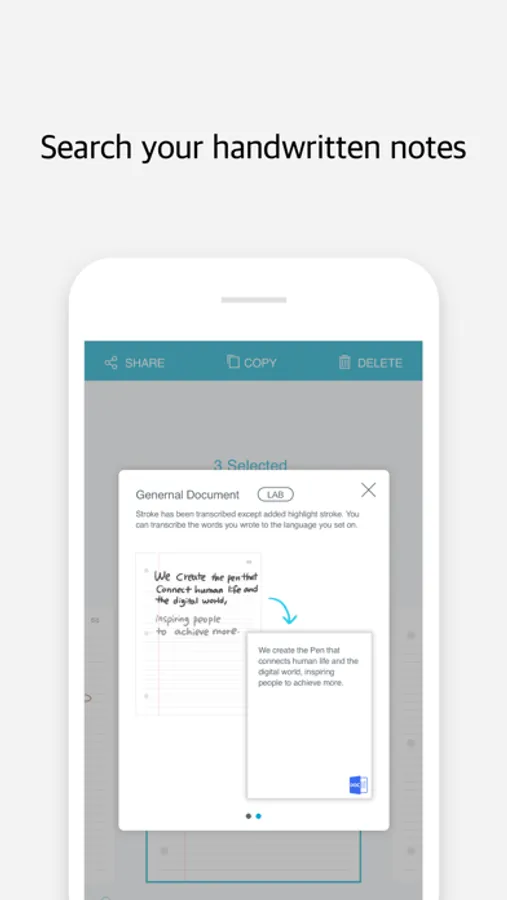 - You can share your handwritten documents in Microsoft Word(.docx) and PowerPoint(pptx) format. This function is experimental, and it will be stabilized gradually.