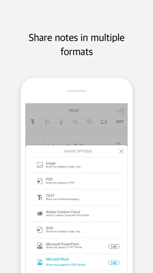 Your handwritten contents can be shared via email, SNS and different applications in PDF, image, text and vector format.
