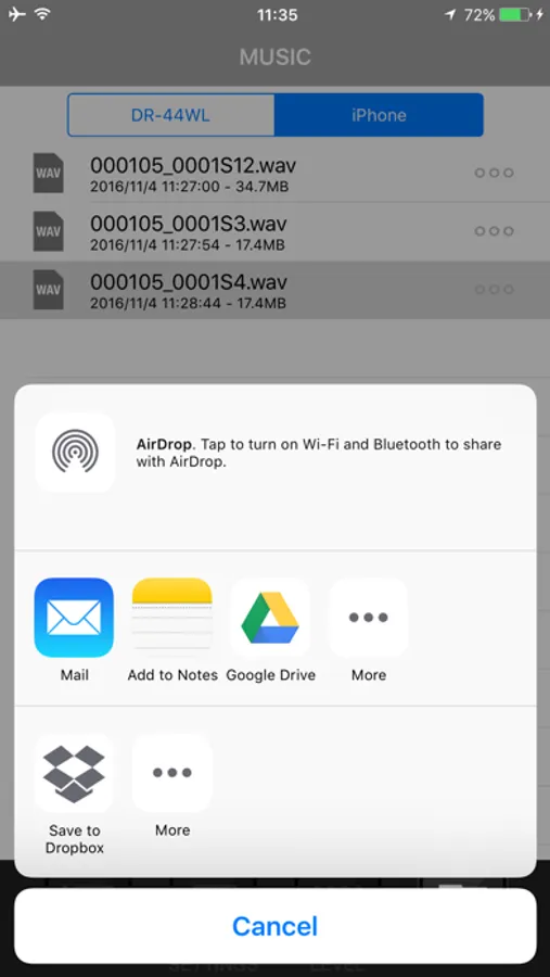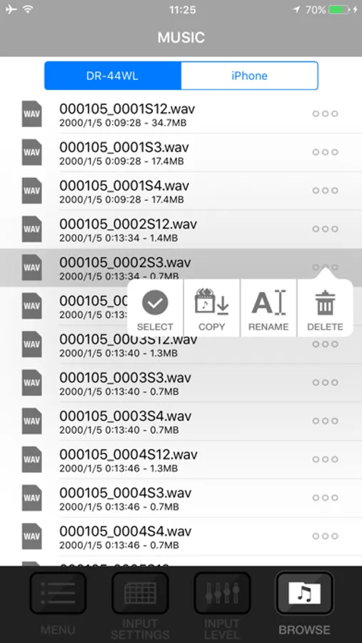 TASCAM DR CONTROL allows you to remotely control recording levels, filter settings, file organizing and file transfer from DR-22WL/DR-44WL to your smartphone or tablet device.