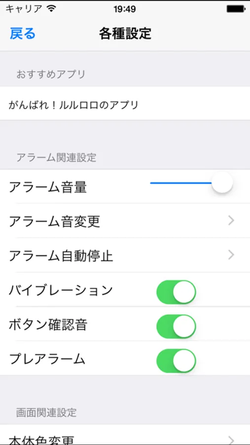 アラームの音量、バイブレーションのON/OFF、ボタンの確認音など細かな設定を変更できます。あなたのお好みに応じて変更してご利用ください。