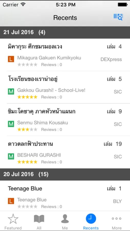 แอปพลิเคชั่นที่จะช่วยคุณคอยจดจำหนังสือการ์ตูนและนิยายที่สะสม ข้อมูลหนังสือการ์ตูนลิขสิทธิ์มากมายจากสำนักพิมพ์ อนิแม็ก, บลายคอมมิคส์, บงกช, บูมทาวน์, บูรพัฒน์, เดกซ์เพรส, รักพิมพ์, เนชั่น, สยามอินเตอร์, ทีเคโอ, วิบูลย์กิจ, เซนชู, ทูมอโรล์คอมมิคส์, เนกิโบส, นิดา, เอ-พลัส, จี-พลัส, เฟิร์ส เพจ โปร, บลิส, แจ่มใส ไลท์โนเวล, เอ็นเตอร์ ไลท์โนเวล, คิงส์ คอมิคส์, พูนิก้า, เอ็นเตอร์ บุ๊คส์, ฮาจิ คอมมิคส์, กิฟต์ บุ๊ค, พะโล้, บียอน มังงะ, ทาเลนท์วัน, เพนโตะ และฟีนิกซ์ เนกซ์