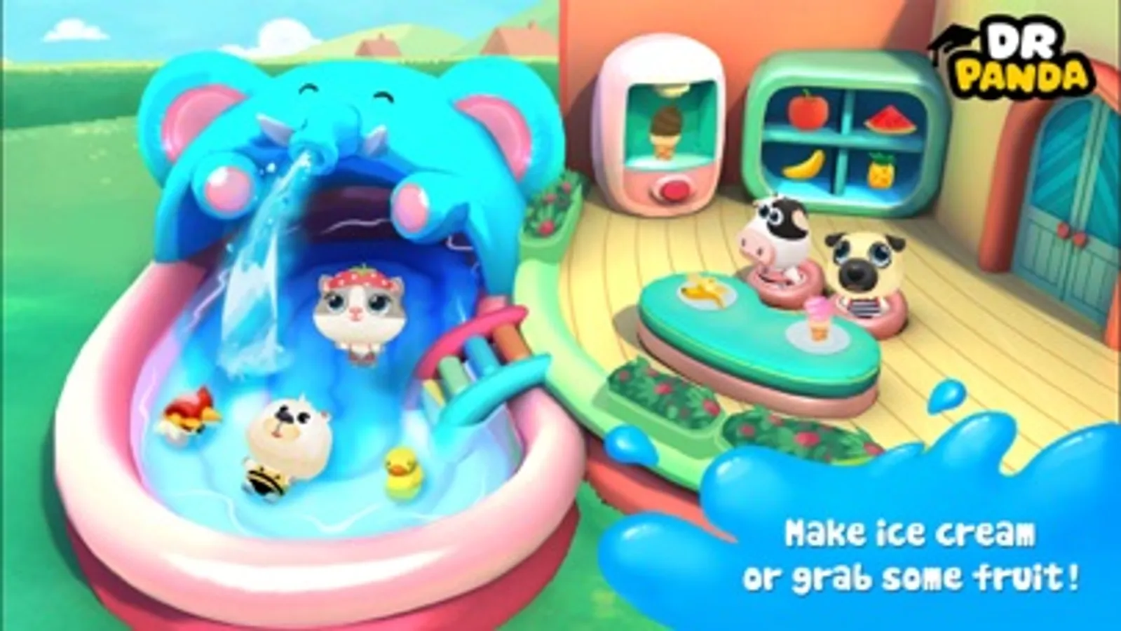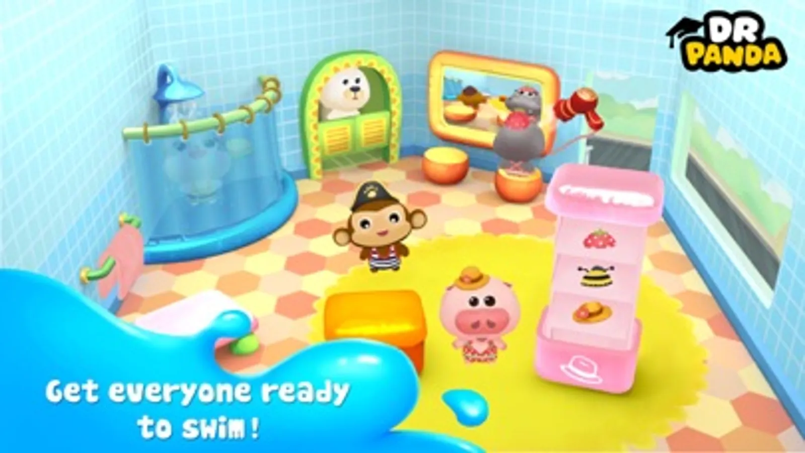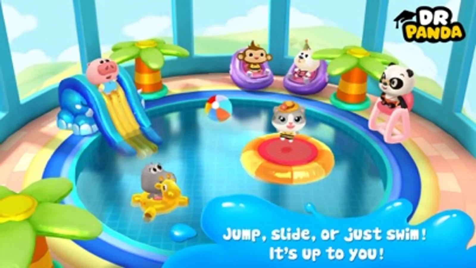 Splash and play with five cute baby animals in Dr. Panda’s Swimming Pool! There are three big pools to dive into and five animals to take care of, so the fun never stops. Play dress up in the locker room, have a snack by the poolside, take a trip down a water slide or dive off the side off a pirate ship in search of hidden treasure!