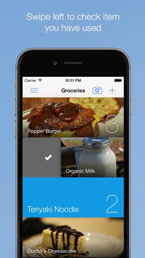 * Swipe left to check item you have used
