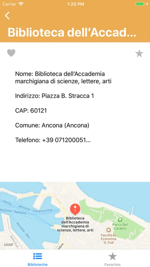 Tra le tante funzioni potrete visualizzare una mappa con tutte le biblioteche che avete attorno (dopo aver premuto l'icona della mappa naturalmente) e visualizzarne i dettagli come indirizzo, telefono, fax, sito web!
