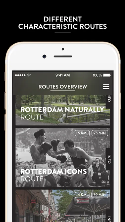 In the app you will find an overview of all the available routes. Pick the route that you're interested in and download it. This route will be saved and displayed within the app.