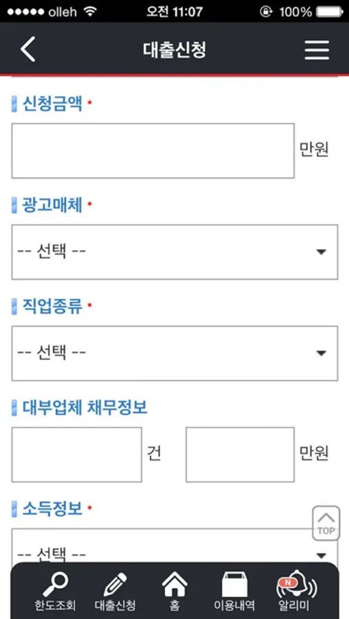 간단한 정보 입력만으로 대출신청을 할 수 있습니다.