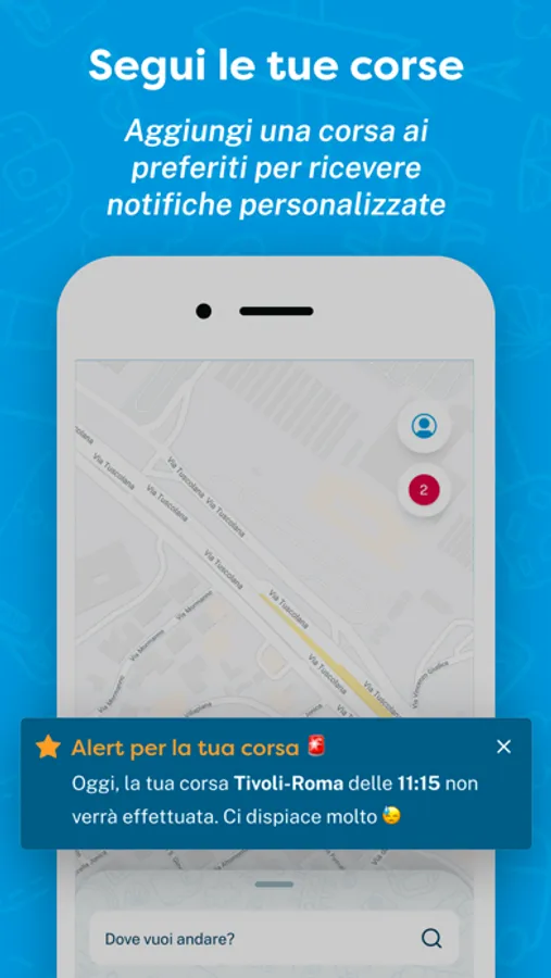 - Aggiungi le corse che utilizzi di frequente e ricevi notifiche personalizzate in caso di soppressione, ritardi o deviazioni.