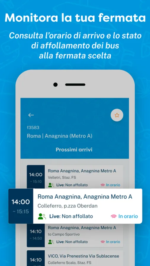 - Tra quanto passa il bus? Nella sezione Fermate trovi i tempi di attesa real time del tuo bus. Non solo! Hai anche informazioni sull’affollamento in tempo reale del mezzo.