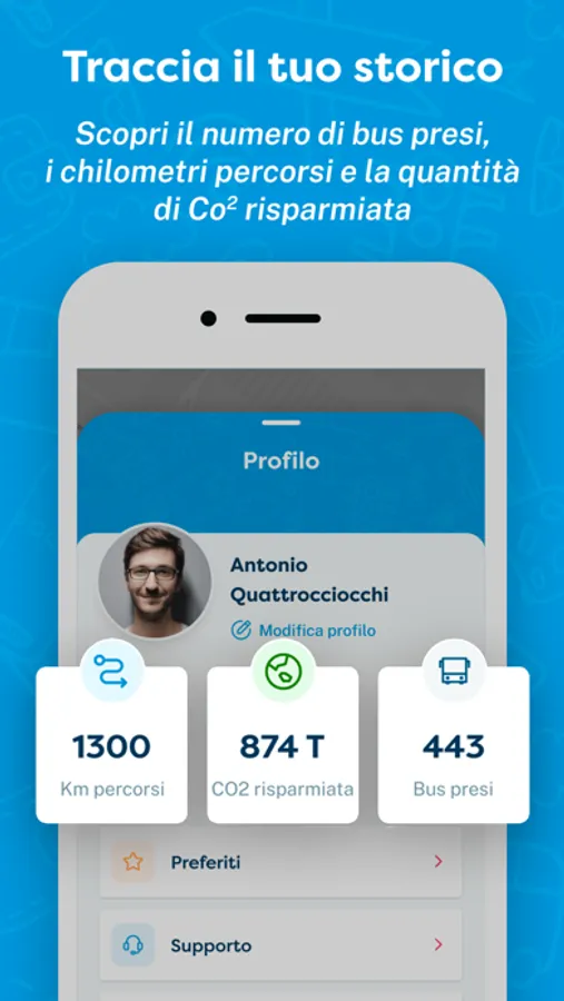 - Il trasporto pubblico è il modo più sostenibile di muoversi. Nella sezione Profilo scopri quante emissioni di CO2 hai risparmiato rispetto all’uso dell’automobile.