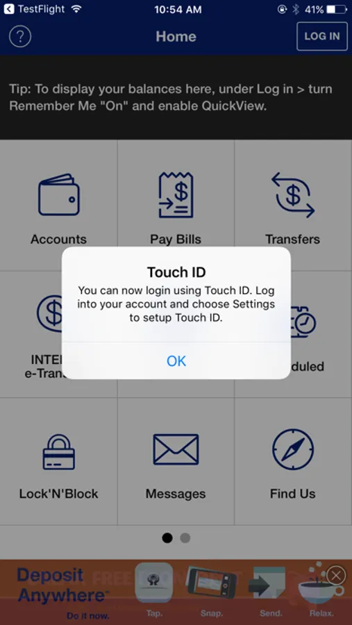 To take advantage of the full functionality of this app, you must already be registered and have logged in to online banking. If you are not an online banking member, you can still use the Branch/ATM locator, Rates and our Contact Us information.