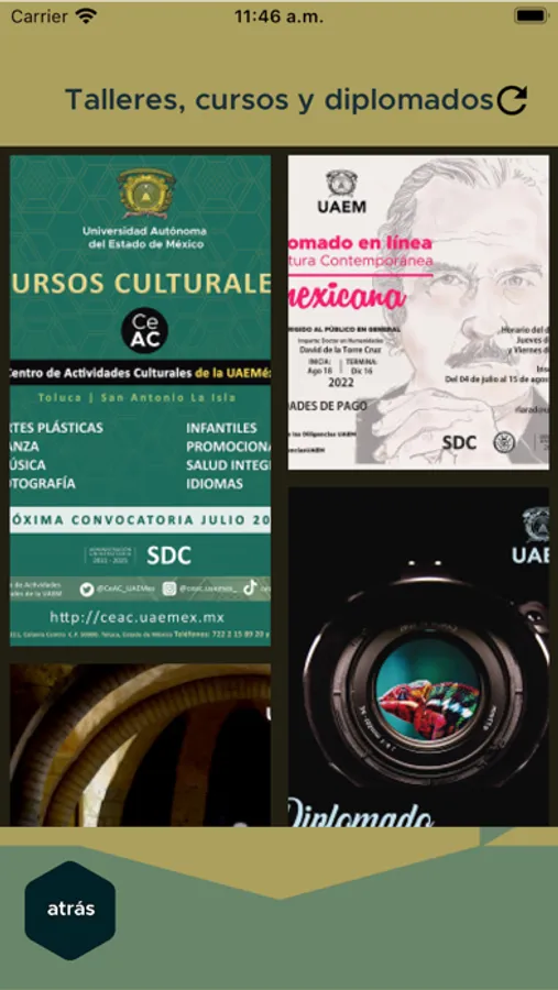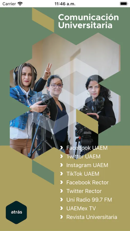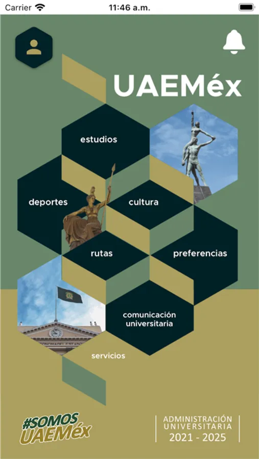 La aplicación móvil UAEM cuenta con los siguientes apartados: