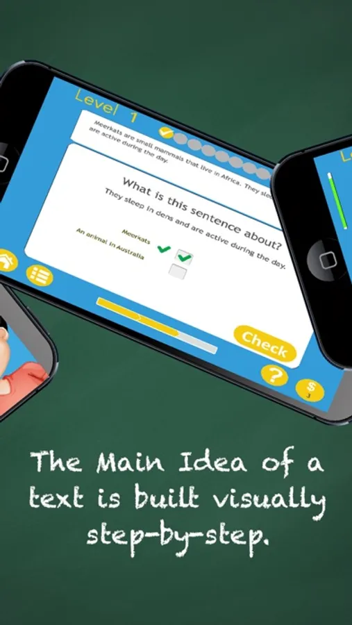 The focus of 'Main Idea - Short Texts' is teaching kids how to identify the main idea of a paragraph. The skill is built incrementally using visual guides.