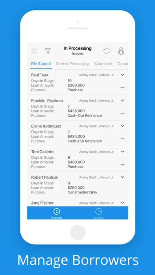 - Get quick access to your database via a searchable list of your borrowers & partners.